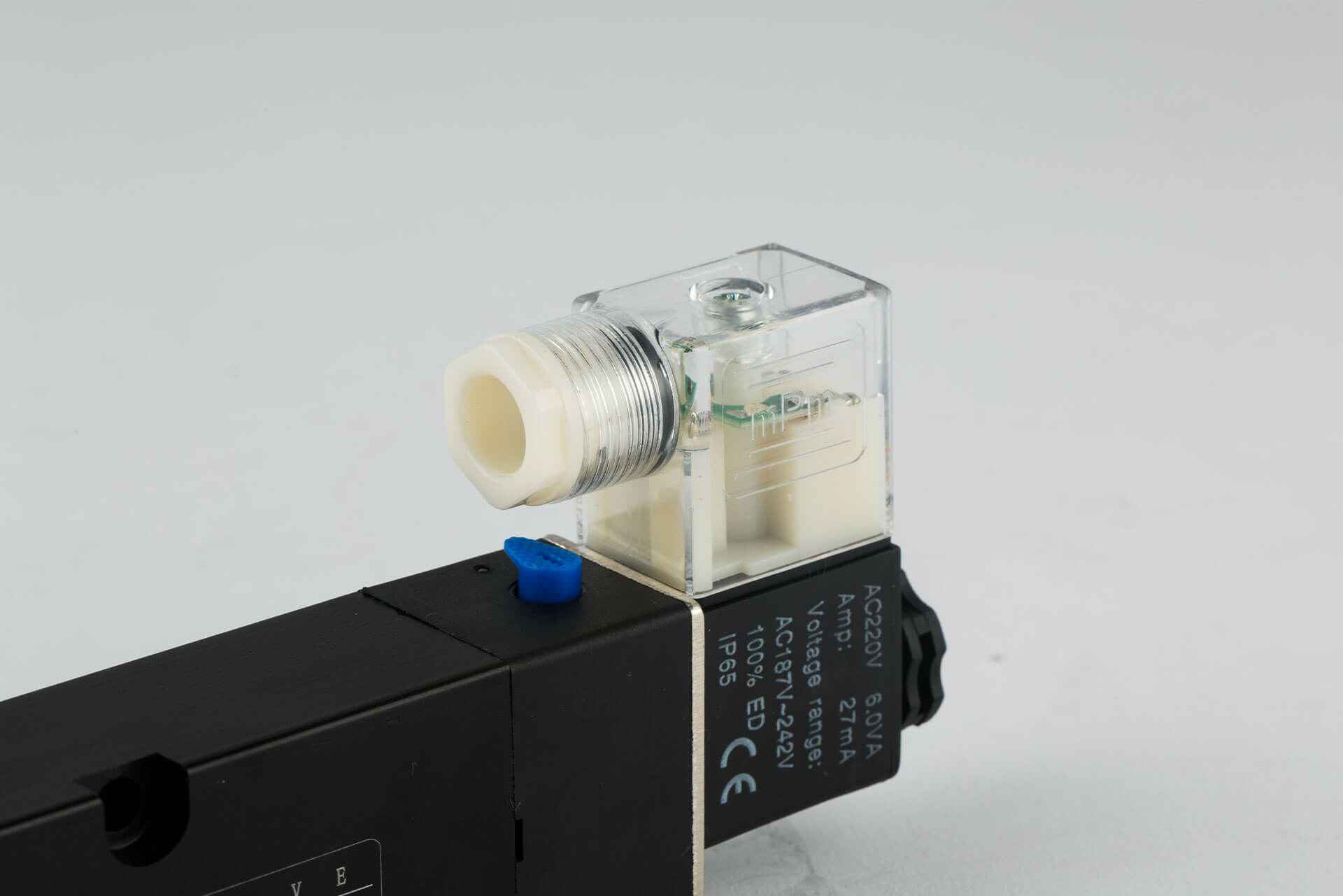 位通数:二位五通 接管口径:进气PT1/4” 排气PT1/4” 气源压力:0.15-0.8Mpa 最大耐压:1.2Mpa 工作温度:-5-60℃ 动作方式:内部先导式 防护等级:IP65 工作介质:气体